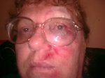 The result was a bleeding brow and lacerated nose and the whole left side of my face is swollen and covered with abrasions.